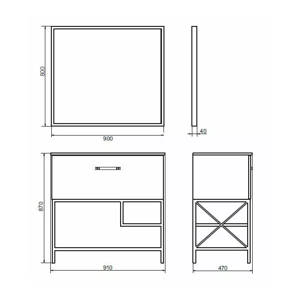 Название: Тумба-умывальникАртикул: Бредфорд 90Варианты цвета корпуса и фасада: Дуб темныйМатериал корпуса: влагостойкое ЛДСПВарианты цвета каркаса: черныйМатериал каркаса: стальГабариты (ШхВхГ): 910*870*470 ммКомплектация: накладная черная матовая раковина Comforty 90EНапольная тумба-умывальник с одним широким выкатным ящиком, оснащенным системой плавного закрывания и пространствами открытого хранения. В основании тумбы - каркас из стального профиля окрашенный черной эмалью. Тумба подготовлена для подключения коммуникаций снизу.