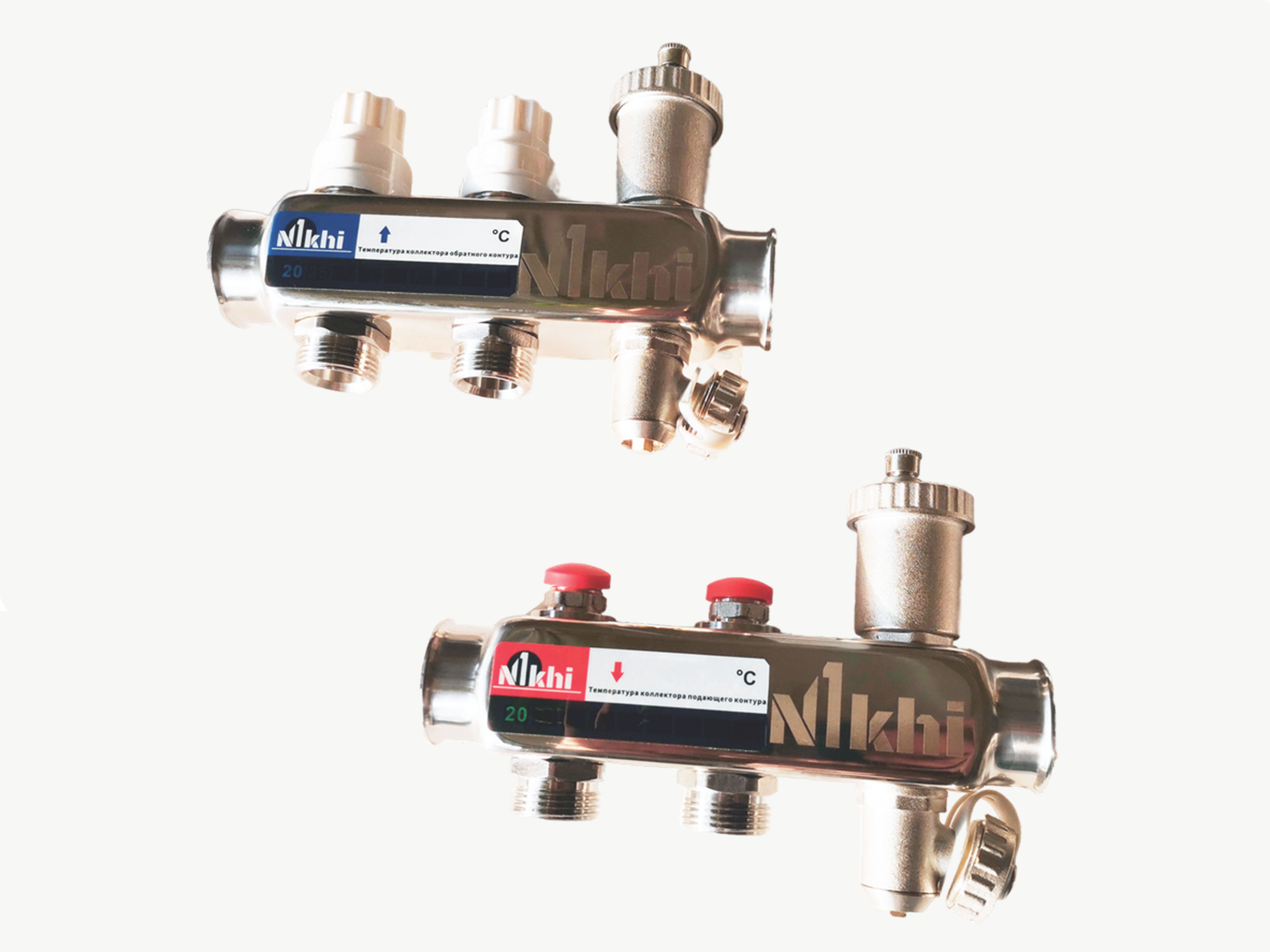 Коллектор стальной для систем отопления на 2 контура HSD2002