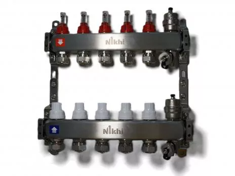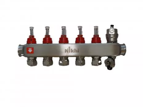 Коллектор стальной для систем отопления на 5 контуров с еврoконусами d16 (2.0) HSW2005e