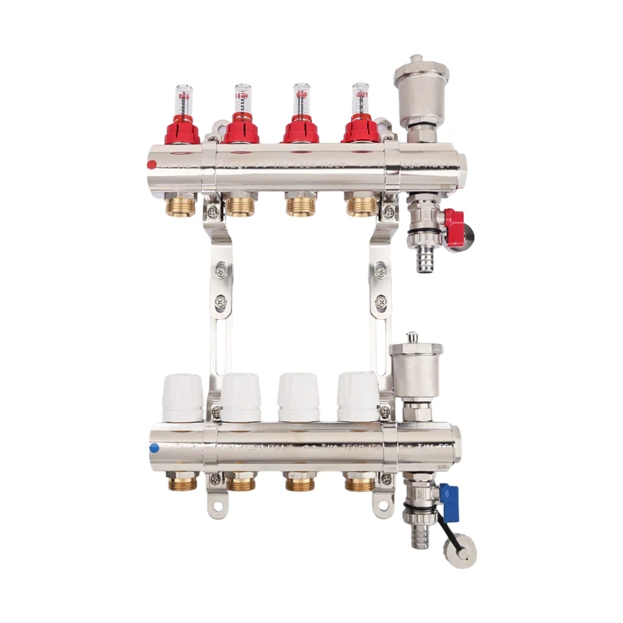 Коллекторный блок служит для распределения потоков по контурам теплого пола, где в качестве теплоносителя используется вода либо незамерзающие растворы гликоля с максимальной рабочей температурой 70 °C, рабочим давлением до 6 бар