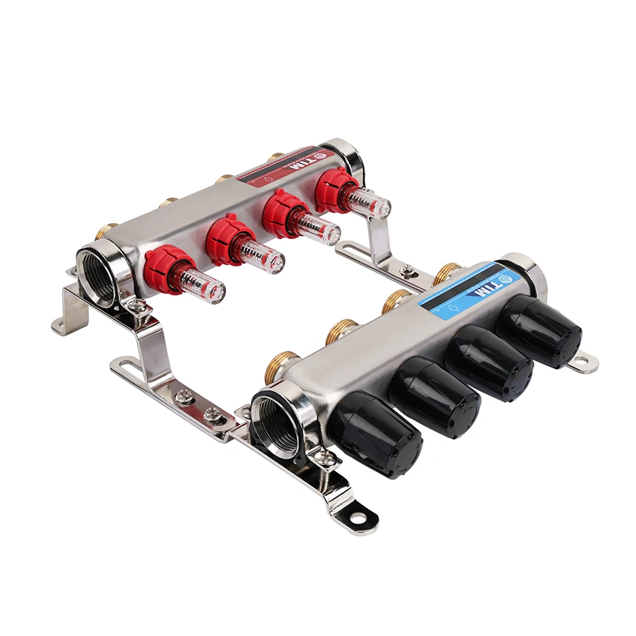 Коллекторный блок служит для распределения потоков по контурам теплого пола, радиаторного отопления, прочих климатических систем, где в качестве теплоносителя используется вода либо незамерзающие растворы гликоля с максимальной рабочей температурой 90 °C, рабочим давлением до 10 бар