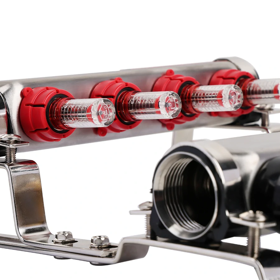 Коллекторный блок служит для распределения потоков по контурам теплого пола, радиаторного отопления, прочих климатических систем, где в качестве теплоносителя используется вода либо незамерзающие растворы гликоля с максимальной рабочей температурой 90 °C, рабочим давлением до 10 бар