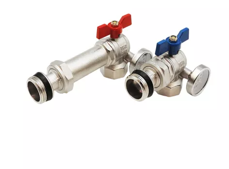 купить Кран шаровой угловой с полусгоном и термометром для коллекторных групп (пара) 1"
