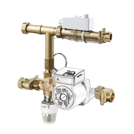 Насосно-смесительный узел для теплого пола TIM JH-1037 предназначен для поддержания постоянной температуры подачи в низкотемпературных системах отопления (системах теплого пола и др.)